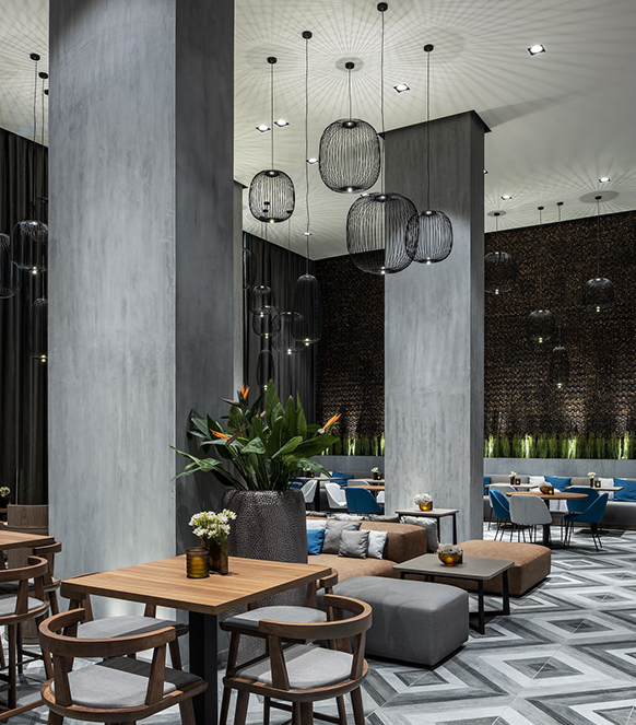 阿爾巴沙萬怡酒店于2018年10月開業(yè),是阿拉伯聯(lián)合酋長國的一家酒店VI設(shè)計(jì)公司。酒店的內(nèi)部裝飾深深植根于意大利風(fēng)格,裝飾材料,高貴的木材,精美的大理石和精致的細(xì)節(jié)展現(xiàn)出嚴(yán)謹(jǐn)而現(xiàn)代的主題風(fēng)格。全日制餐廳位于大廳旁邊,由金屬條而不是墻壁隔開,旨在鼓勵(lì)人們在兩個(gè)空間之間自由流動(dòng)。繪制假天花板和地板的線也標(biāo)記了這種流動(dòng)。一樓還設(shè)有雪茄吧餐廳,不僅是用餐的地方,而且還得益于經(jīng)過深思熟慮的布局,定制的家具和諸如混凝土,雪茄。臥室配有定制設(shè)計(jì)的家具,精致的細(xì)節(jié)和精致的裝飾讓您住得舒適。在屋頂樓層,客人可以享受水療護(hù)理,也可以參加設(shè)備齊全的健身中心。酒店以帶室外游泳池和豪華酒吧的屋頂為中心。酒店為客戶提供了在配備先進(jìn)設(shè)備的會(huì)議室舉辦活動(dòng)的可能性.